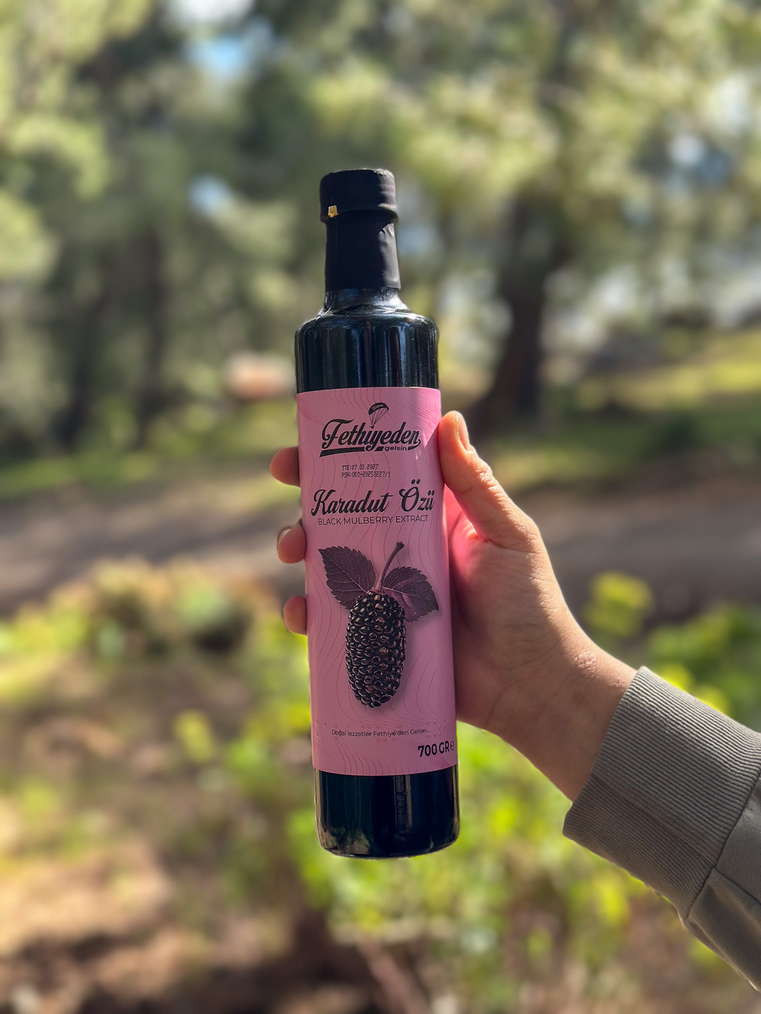 Fethiye’nin verimli bahçelerinde yetişen taze karadutlar, hiçbir katkı ve koruyucu madde eklenmeden, geleneksel yöntemlerle yoğun öz haline getirilmiştir.